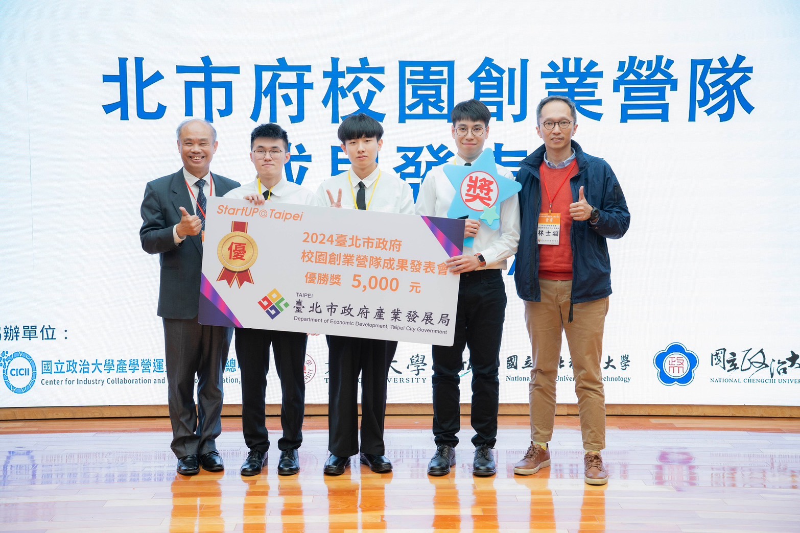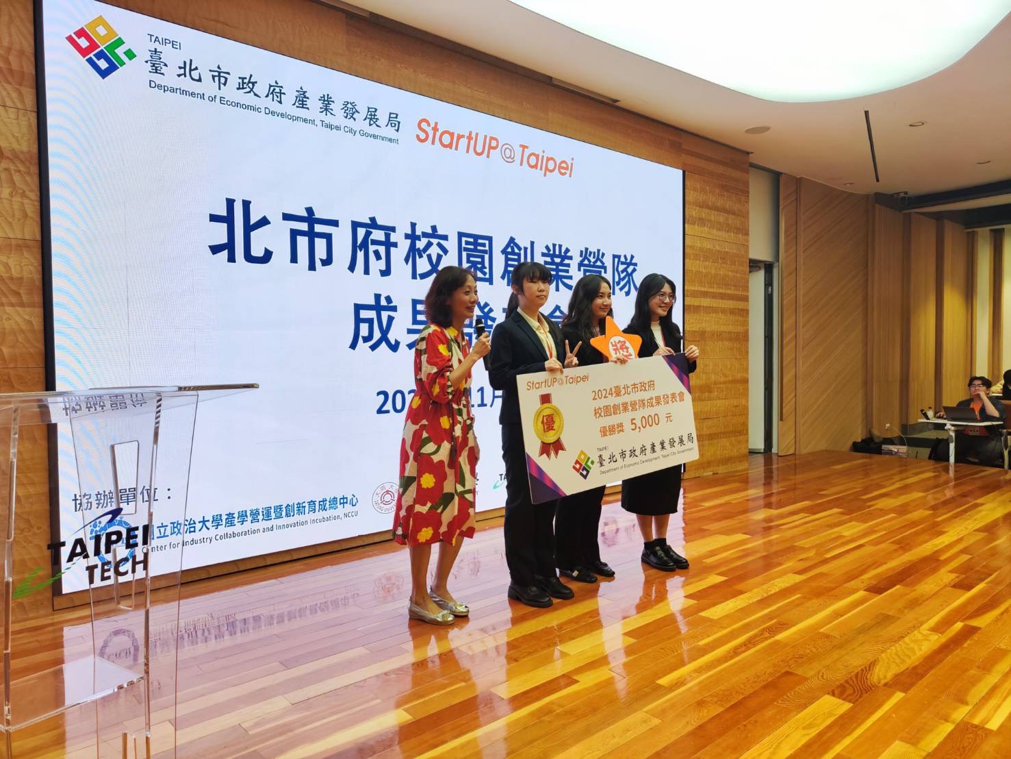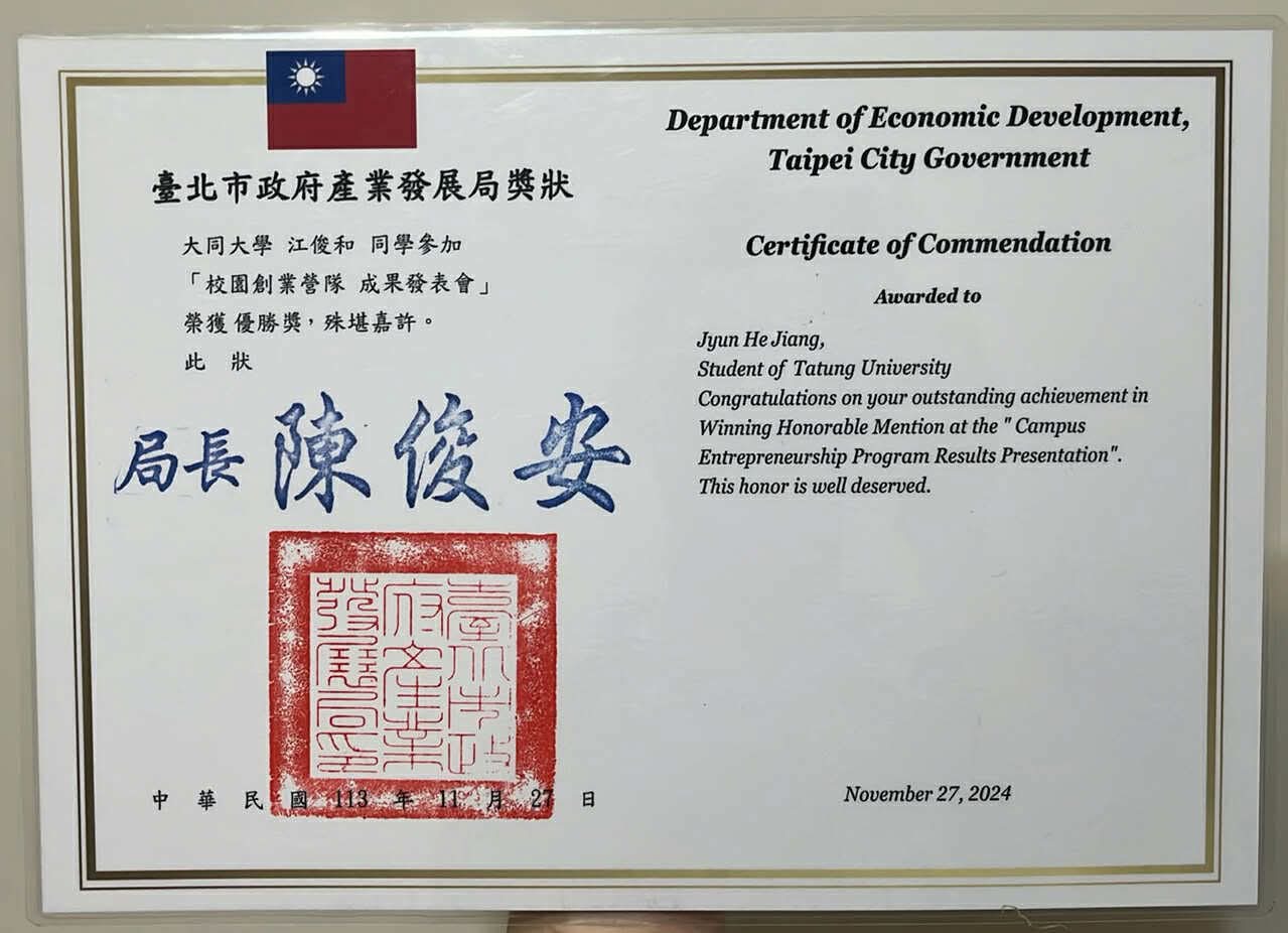 恭賀本系 鄭穎懋老師帶領資工系學生葉姵伶、廖子漁、林文奎、江俊和、彭誠佑於「北市府校園創業營隊成果發表會」獲得優勝。(113.11.13)